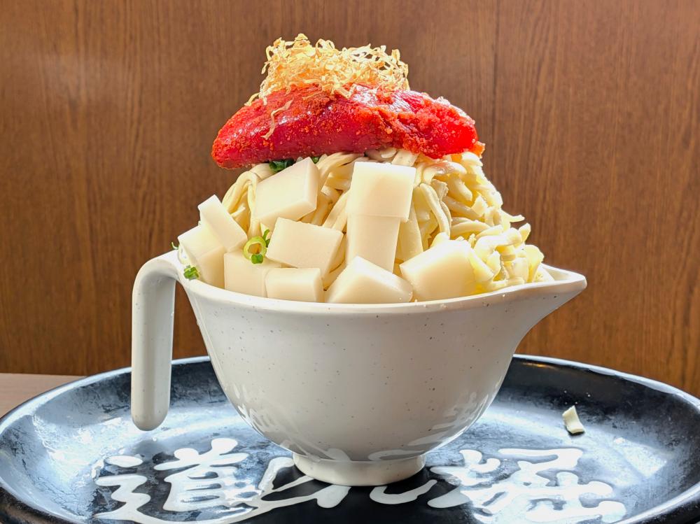 下町の味!一番人気のもち明太子チーズに、さらに麺入り!もち明太子チーズの約1.55倍のボリュームです。